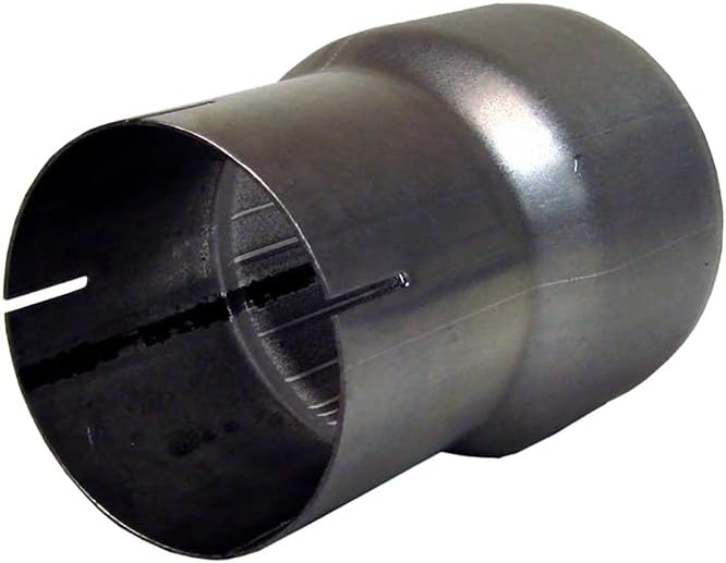 The MBRP UA2001 is a 4-inch I.D. to 5-inch O.D. exhaust pipe adapter, constructed from durable aluminized steel. This universal fitment adapter is designed to seamlessly connect exhaust components for optimal performance in a wide range of vehicles, including cars, trucks, and SUVs. It is an essential part for exhaust modifications or upgrades.