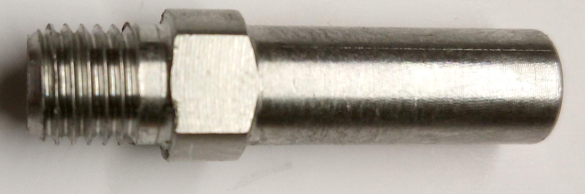 รูปที่ 1: Riello 3008001 Gas Nozzle. This image shows the metallic nozzle with a threaded base and a cylindrical body, featuring a central opening for fuel delivery.