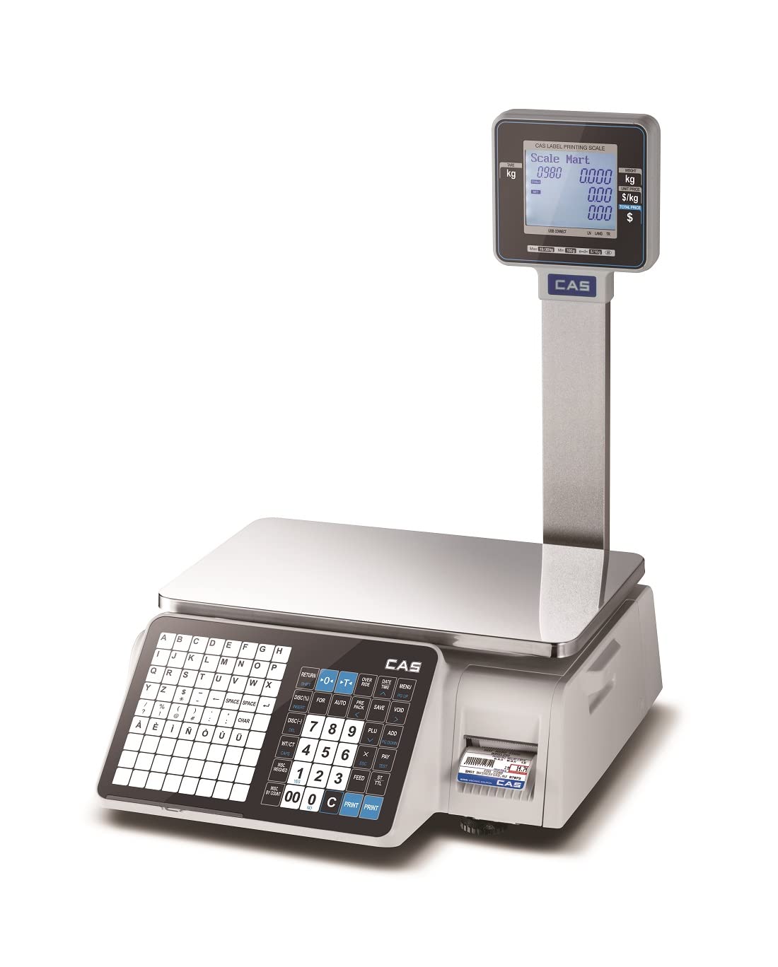 Figure 2.1: CAS CL3000-P Barcode Label Printing Scale with dual display and integrated printer.