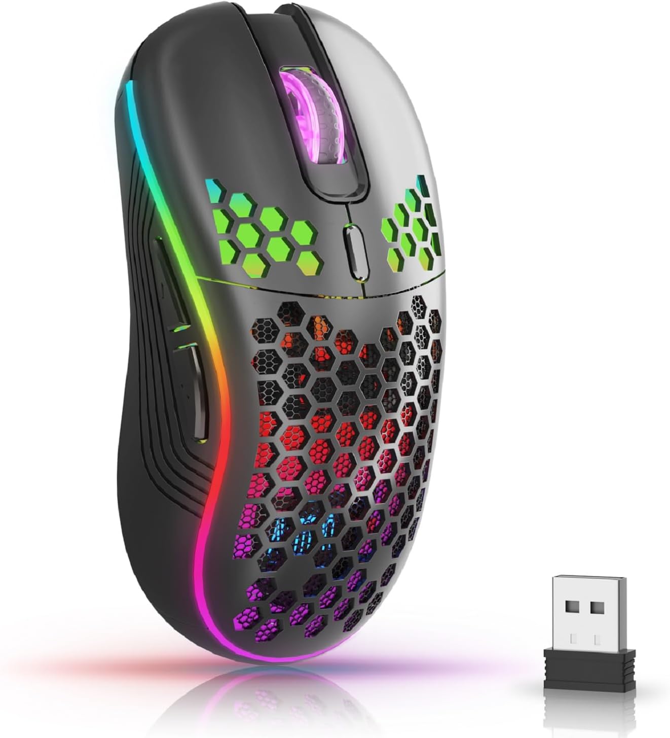 The AVMTON Wireless Gaming Mouse is engineered for both gaming and office use, offering a comfortable ergonomic design and responsive control. It features a honeycomb hollow design with RGB backlighting, providing both aesthetic appeal and lightweight performance.