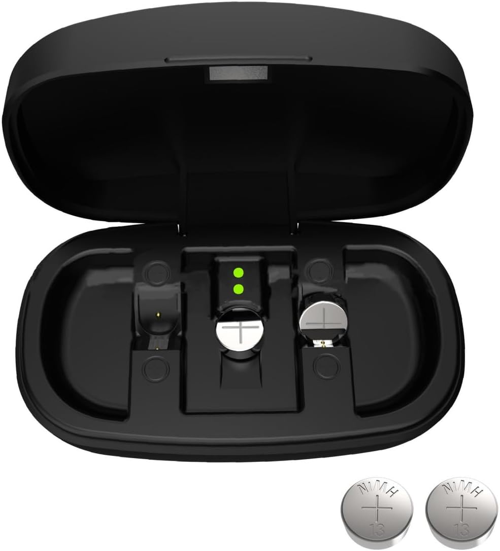 Figure 1: Wokyo P13 Hearing Aid Battery Charger Station with two size 13 rechargeable batteries.