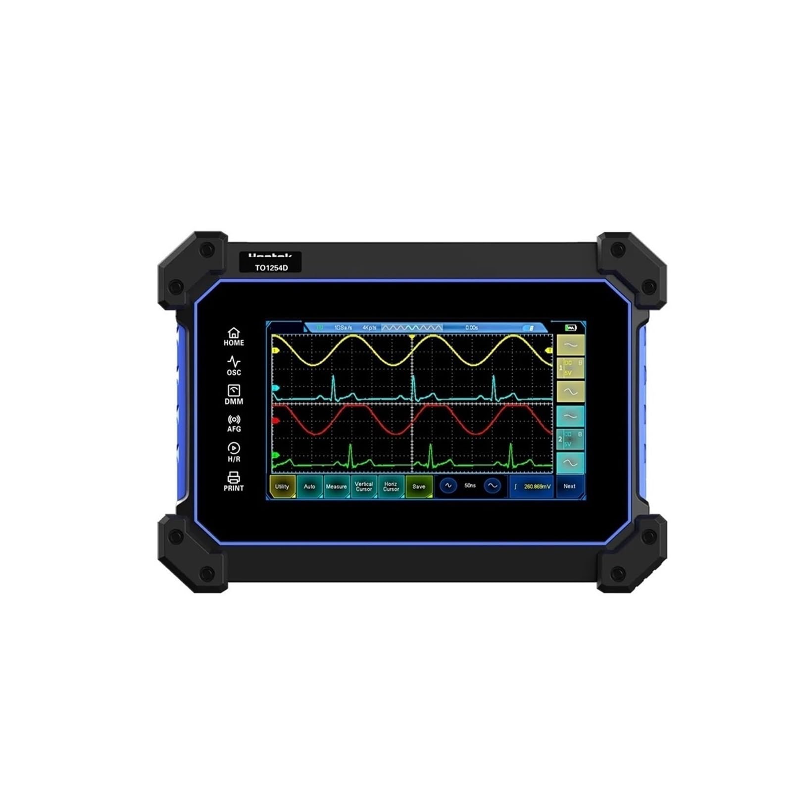 - Waveform Saving: The device includes 1GB of built-in storage space. Use the 'Save' function to store waveforms and screen captures.