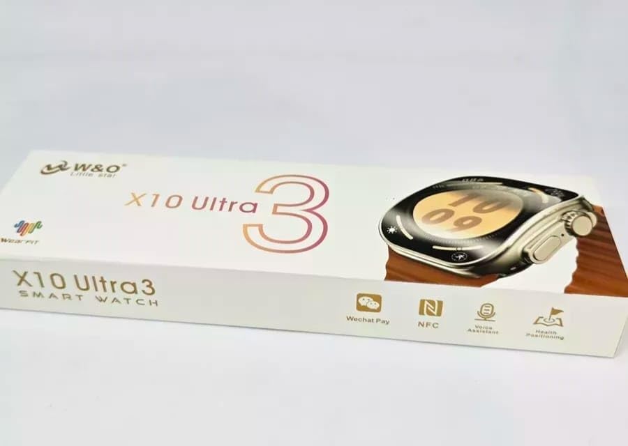 Image: The retail packaging for the IWO WATCH X10 ULTRA 3 Smart Watch, displaying the model name and key features.