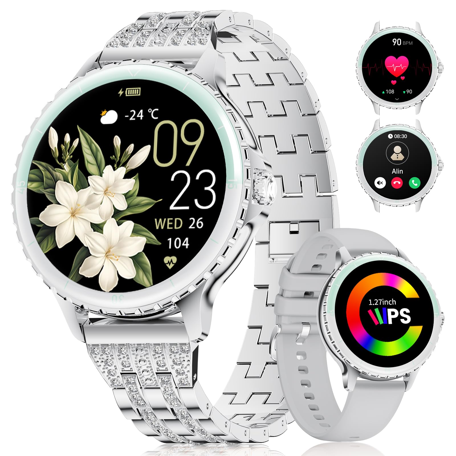 This manual provides instructions for the operation and maintenance of your LIGE FV26-F Smartwatch. Please read this manual carefully before using the device to ensure proper function and to maximize its features. The smartwatch is designed for women, featuring a round display, silver stainless steel band with diamond accents, and a silicone strap option.